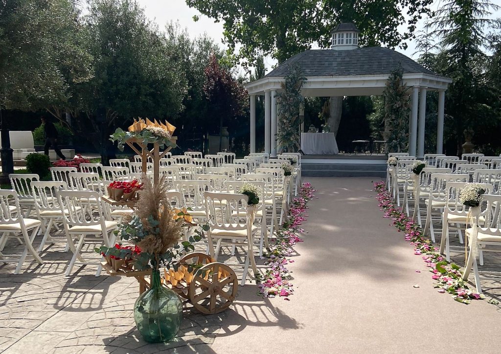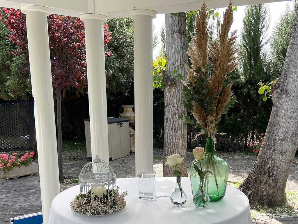 JARDINES «LA HACIENDA» – EL PUIG Por poblaflorbodasmayo 24, 2022noviembre 27, 2025Bodas civiles Este fin de semana fuimos de boda al exclusivo salón Jardines “La Hacienda”. Nuestros novios quisieron destacar el romanticismo de la ocasión con una decoración en tonos pastel, creando un lugar mágico.