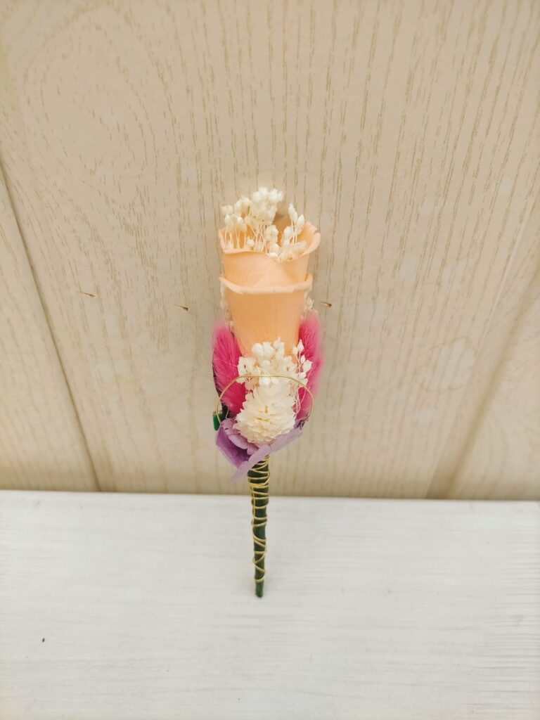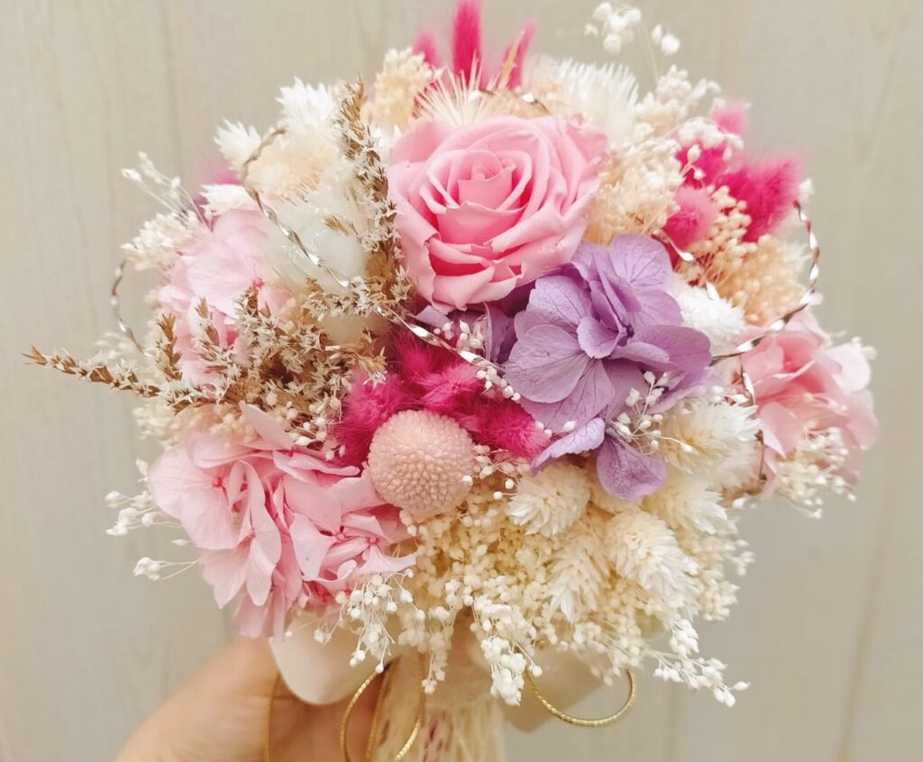 Rosa buscaba un ramo digno de sus bodas de oro, y bastó una mirada a este ramo preservado para que sus ojos se encendieran de emoción. Sus tonos rosa, mezclados con delicados matices naturales, lo convirtieron en la elección perfecta, un detalle lleno de elegancia y encanto que hizo aún más especial este día tan fantástico.